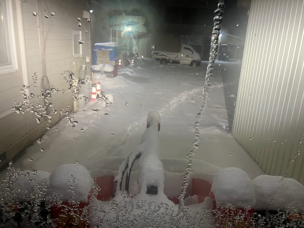 20センチ程度の積雪がありましたので、6時過ぎから除雪を始めました。(まだ暗い!)こういう時のためのホイルローダーです。ホイルローダー導入にあたっては、近所のセブンイレブンのオーナーがお店の駐車場の除雪に使ってらしたので、使い心地を伺ったところ、面白くて人に任せられないという回答でした。今徐々にそういう感覚になりつつあります。ところで年初、除雪は俺やりますよ!って早々豪語していた外構担当の伊藤君は、呆気なくインフルエンザに感染。かれこれもう一週間休みです。というわけで、本日の雪片づけは私がやることになりました。やはり3回目ぐらいになると慣れてきますが、慣れると大体事故を起こしたりするので、今日あたりから相当気をつけて作業してます。