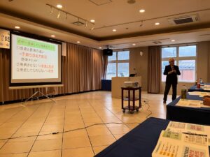 そもそも今回の講演の企画意図は、住宅価格が高騰する中で着工棟数が減少している。業者間で比較する要素があまりないと結局価格競争となってしまう。価格競争に巻き込まれることは中小工務店の経営戦略としては最悪と言えるため、しっかりとした価値をお客様に自信を持って伝えるための勉強として先生にお願いをした次第。集まっていただいたのは、信州ファース会会員工務店の社員の皆様です。