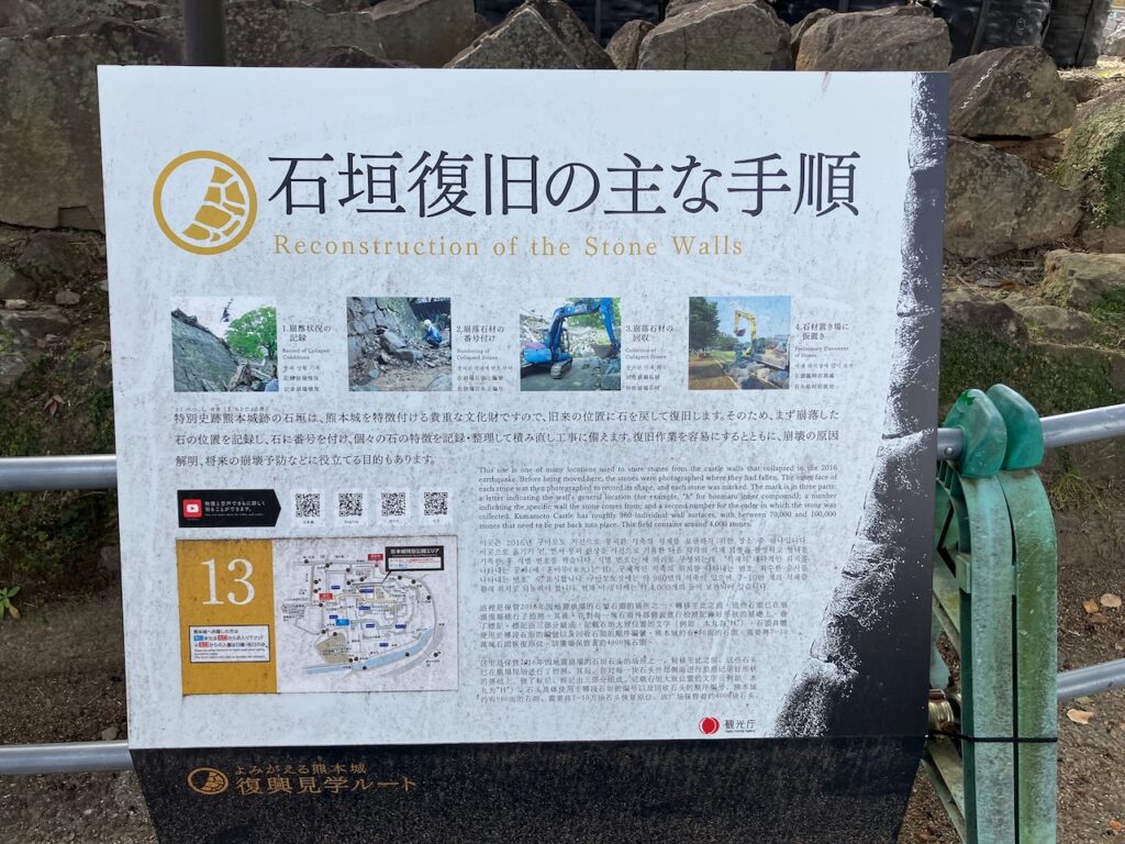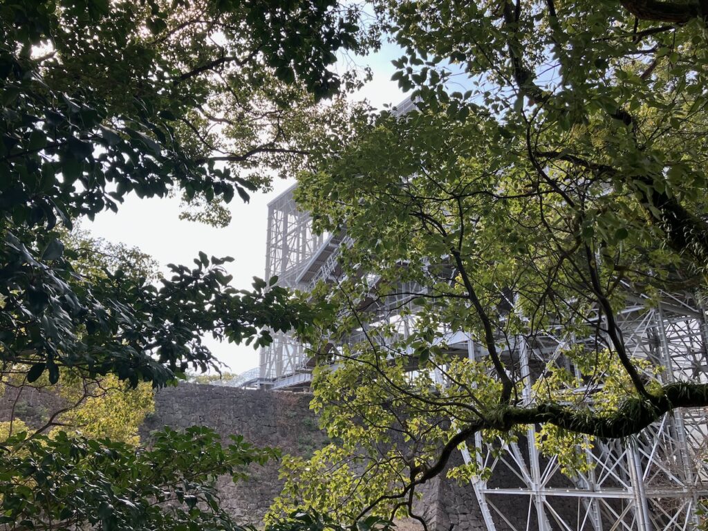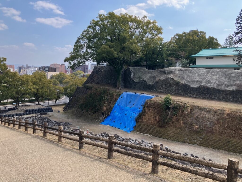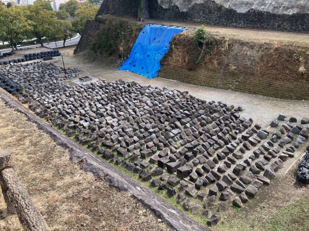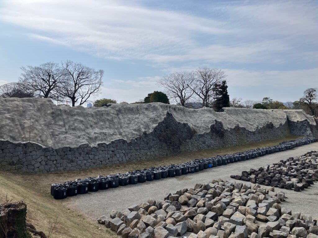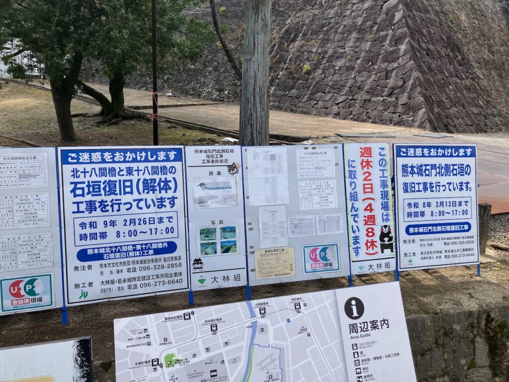 本日研修で熊本に来ています。たまたま今回会場が熊本城のそばだったので、気になっていた地震災害からの復旧状況を見てきました。なぜ気になっていたかと言いますと、以前に、工事を担当している大林組特殊工法部の方の講演を聞いたことがあったためです。熊本城は初めてだったのですが、そもそもこの石垣の圧倒的なボリューム感に度肝を抜かれました。聞けば完全復旧完了予定は2052年度とのことで、まだまだかかるわけですが、それも納得の現場でした。