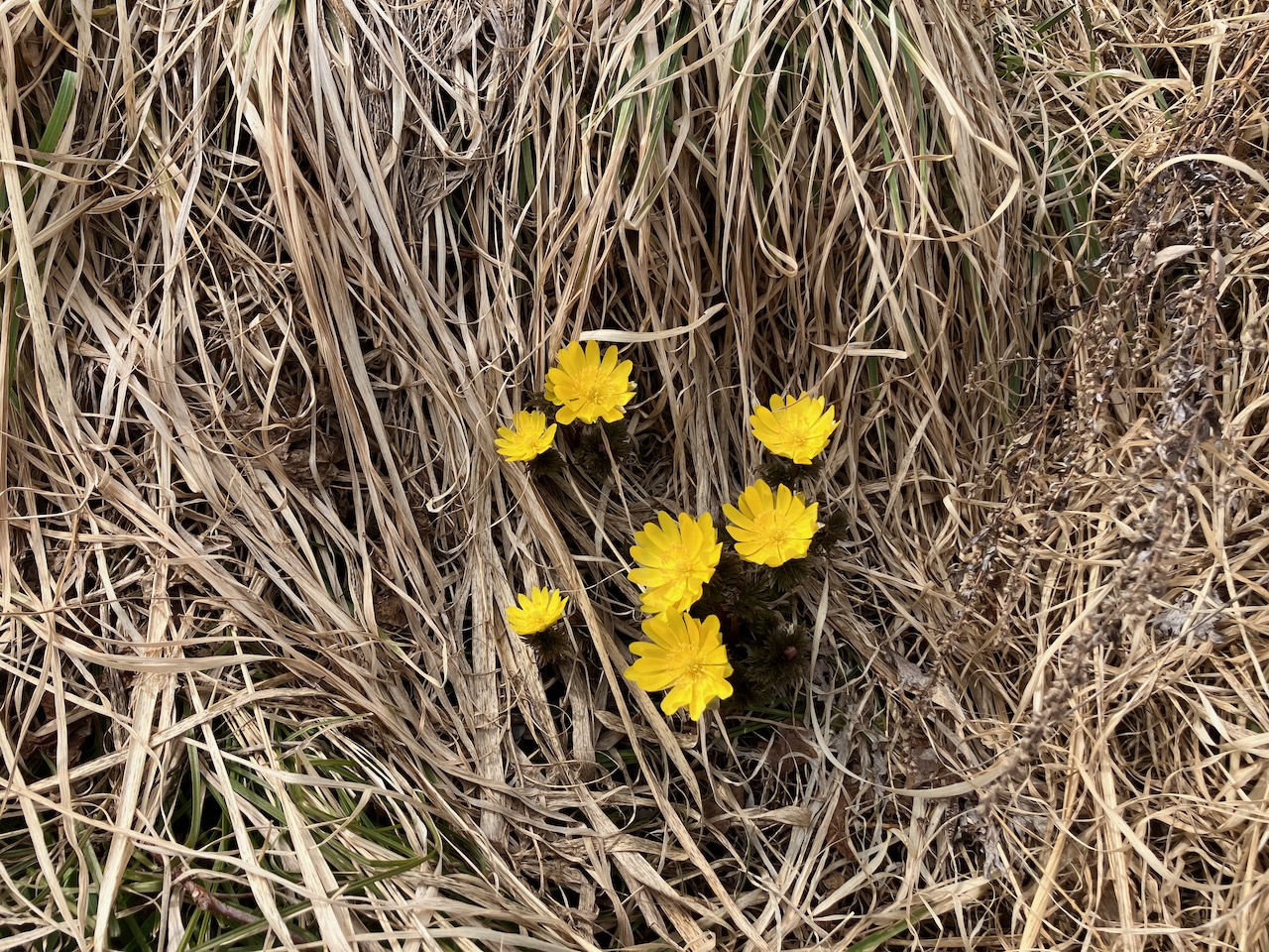 家のそばの水路の件で、近隣の方と現地打ち合わせをしていたら、福寿草が咲いていました。もう3月ですから咲いていても不思議では無いのですが、何かハッとしました。